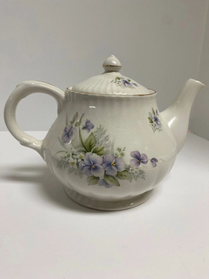 This exquisite Vintage Royal Park Fine Earthenware Teapot from Staffordshire, England, boasts a charming floral design. A rare find for collectors of antique teapots. 6″ Height with Lid, 8″ Width from Spout to Handle. Pre-Owned, there is crazing on the glaze with the age as shown in pictures.